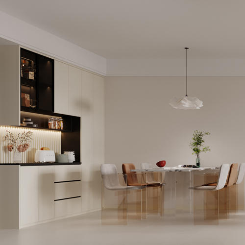 极简风格在满足基本功能需求的基础上,将设计的材料、元素、色彩及照明简化到最少,每个细节都呈现出完美的和谐,让空间看上去非常简洁大气。常用的材料包括大理石、木饰面、木格栅、金属等,常用配色为黑、白、灰、棕。
